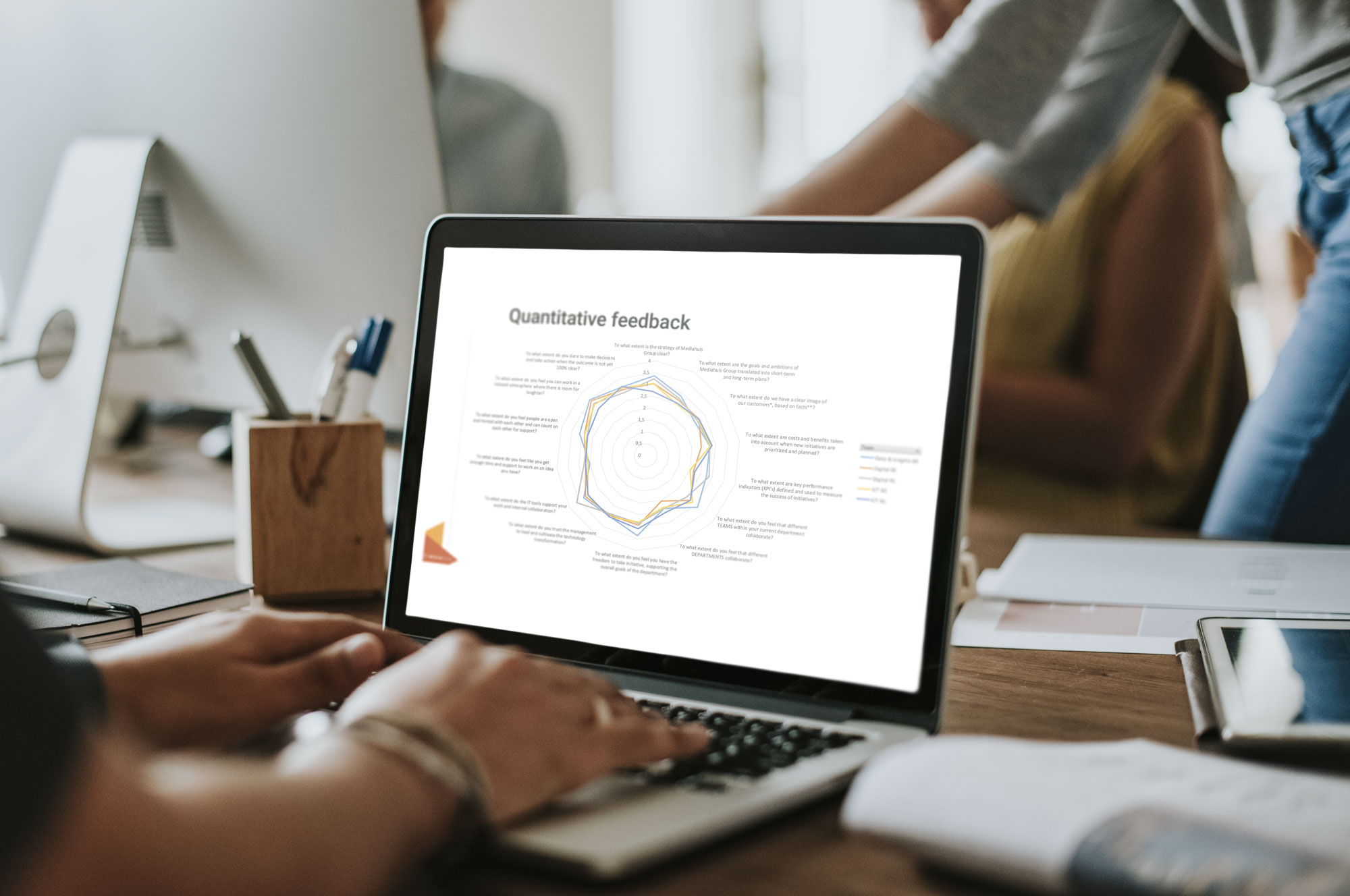 Om inzicht te krijgen in de perceptie en noden van medewerkers, ontwikkelden we een survey op maat van Mediahuis. Deze combineerde zowel kwalitatieve als kwantitatieve vragen, waardoor we niet alleen cijfers maar ook onderliggende drijfveren en bezorgdheden konden blootleggen.